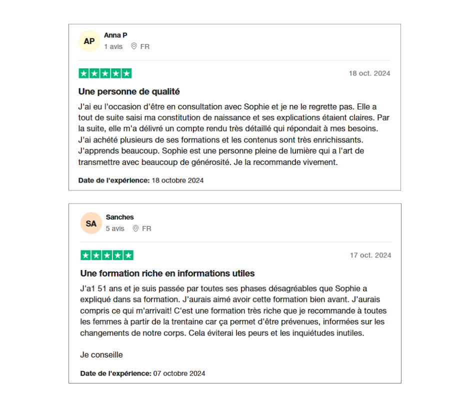 "Elle est hyper complète cette formation ! Dans le sens ou tout est abordé : Alimentation, hygiène de vie ... avec des clés pour nous comprendre et appliquer des choses concrètement ! Se comprendre est une des clés pour bien vieillir !