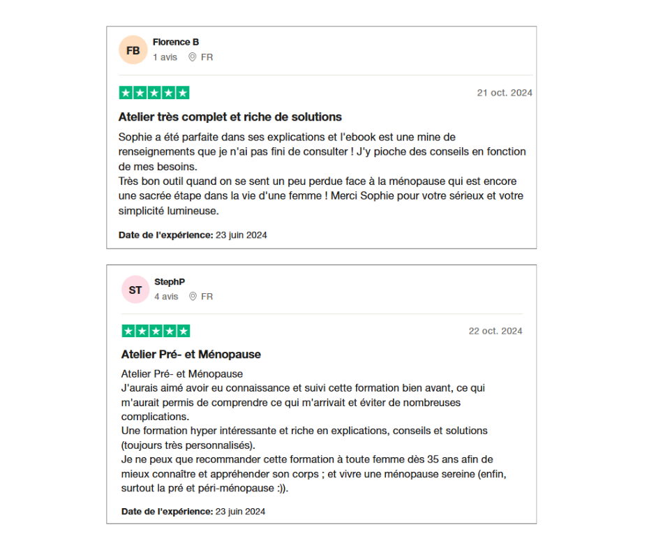 Mon atelier, "Vivre une préménopause et une ménopause sereines" est conçu pour vous montrer exactement comment gérer efficacement et positivement cette transition naturelle.